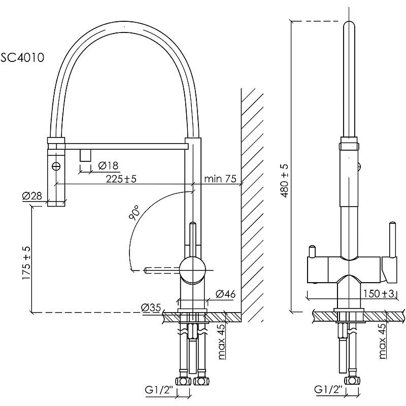 Высота излива, мм