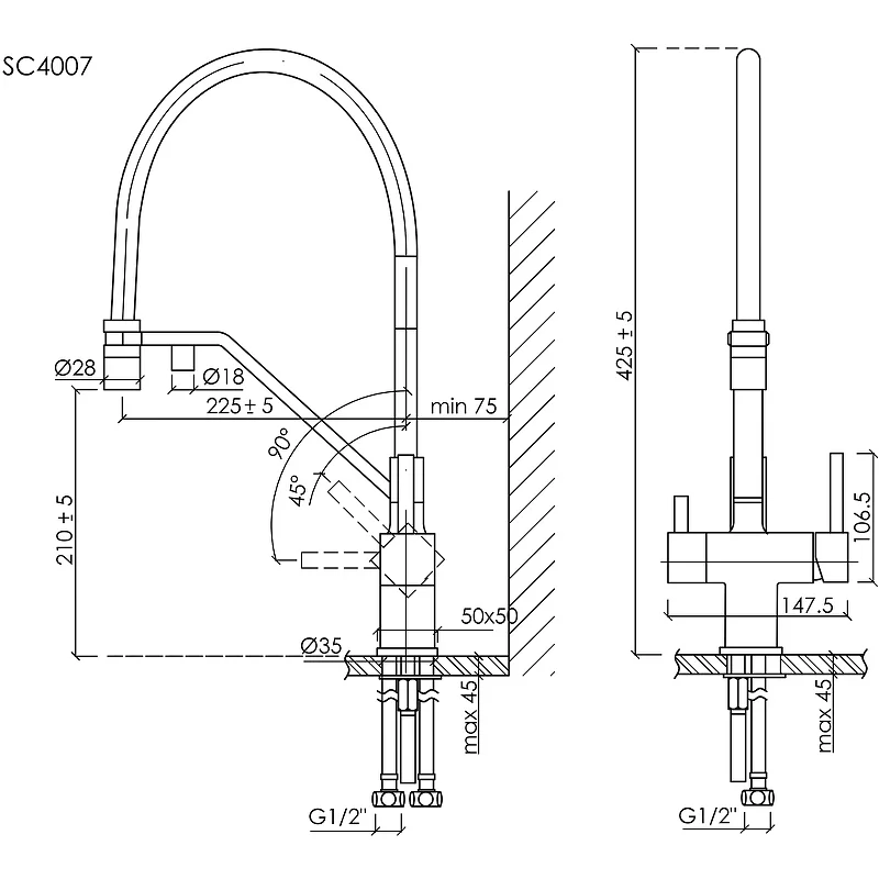 Высота излива, мм