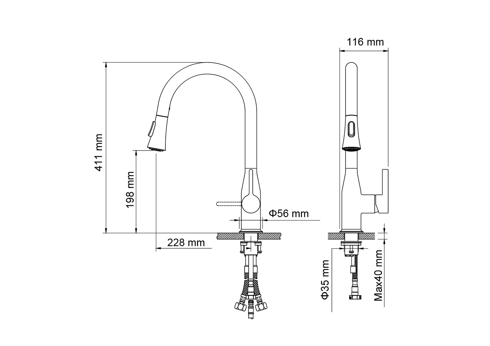 Смеситель для кухни Timo Saona 2336/00FL с выдвижной лейкой хром