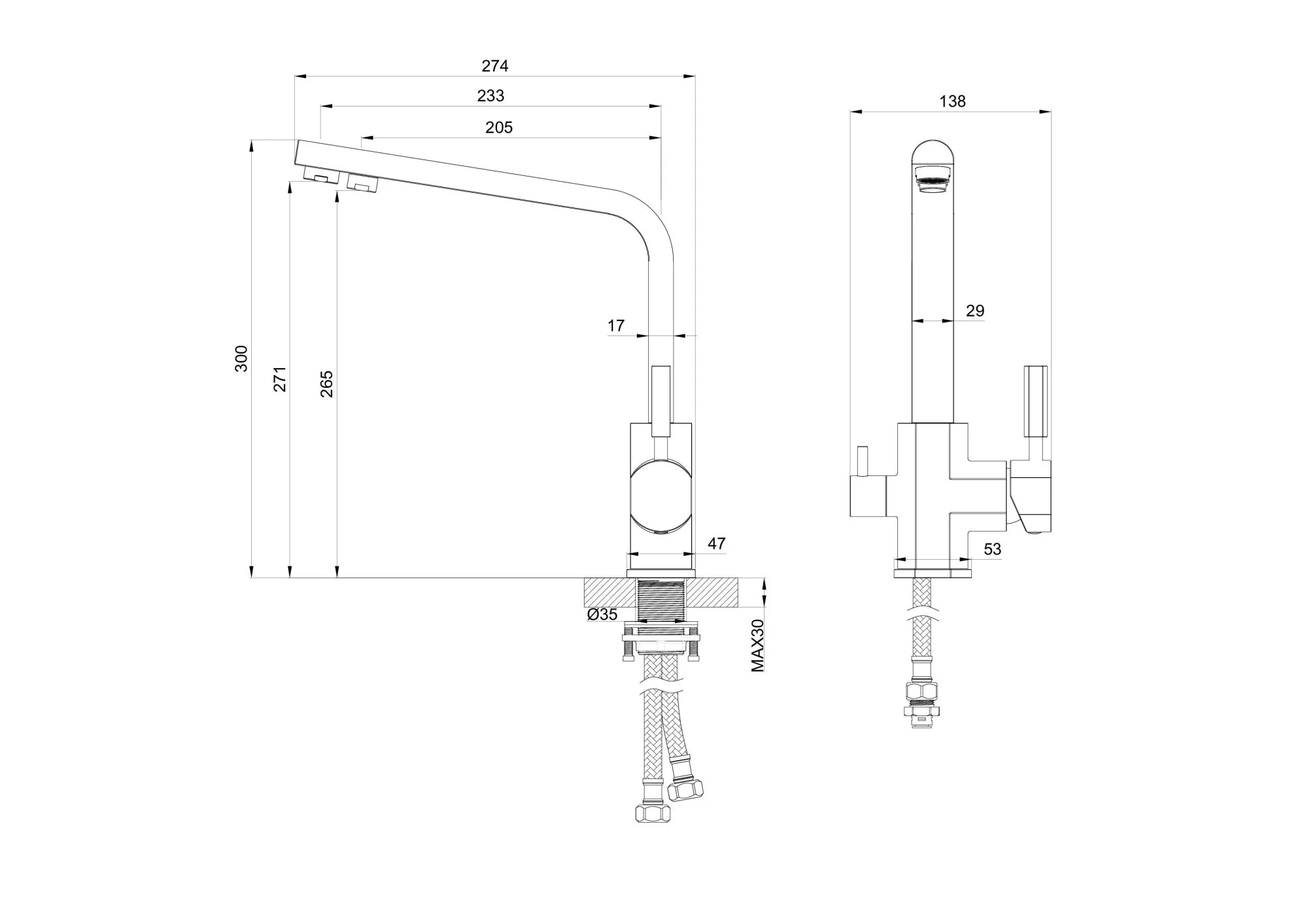смеситель, гибкая подводка, монтажный комплект