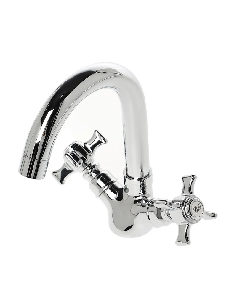 Смеситель для раковины с поворотным изливом Agger Retro-X A1701100 – элегантная классика и безупречное немецкое качество. Высокий поворотный излив удобен для проведения ежедневных процедур. Встроенный аэратор экономит воду, делает струю мягкой и исключает разбрызгивание. Для плавного регулирования напора и температуры воды предусмотрены два надежных вентиля (керамические кран-буксы). Хромовое покрытие, за которым очень просто ухаживать мягкой салфеткой, обеспечивает блеск поверхности на долгие годы.