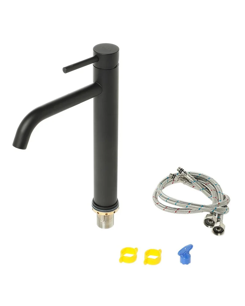 Смеситель для раковины с фиксированным изливом Agger Zest гармонично дополнит современный интерьер ванной комнаты. Высокая модель предназначена для использования с накладными раковинами. Для изготовления изделия используется экологичная латунь, а модное на сегодняшний день покрытие в цвете матовый черный, за которым просто ухаживать мягкой салфеткой, нанесено методом порошковой окраски с многоступенчатой системой подготовки и высокотемпературной обработкой. Включение воды и регулирование температуры осуществляется при помощи удобного джойстика (керамический картридж). Встроенный в излив аэратор насыщает воду воздухом, делая струю равномерной и мягкой.