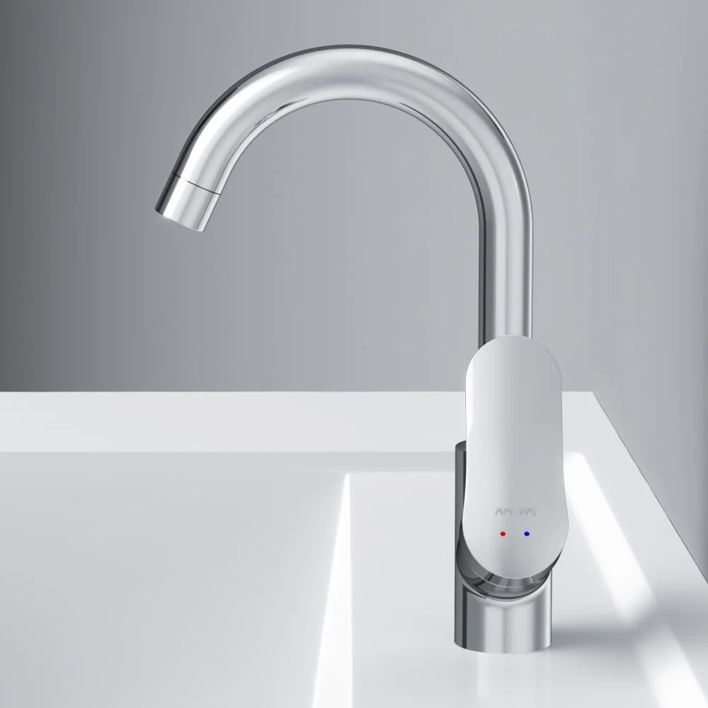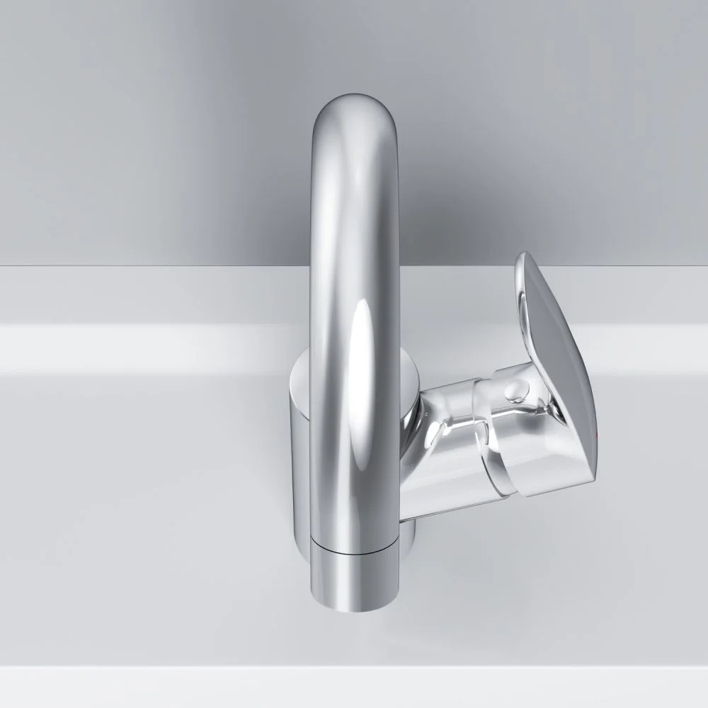 вид и идеально подойдет для раковины с глубокой чашей а благодаря обширной зоне движения ручки управлять температурой воды еще проще. ""