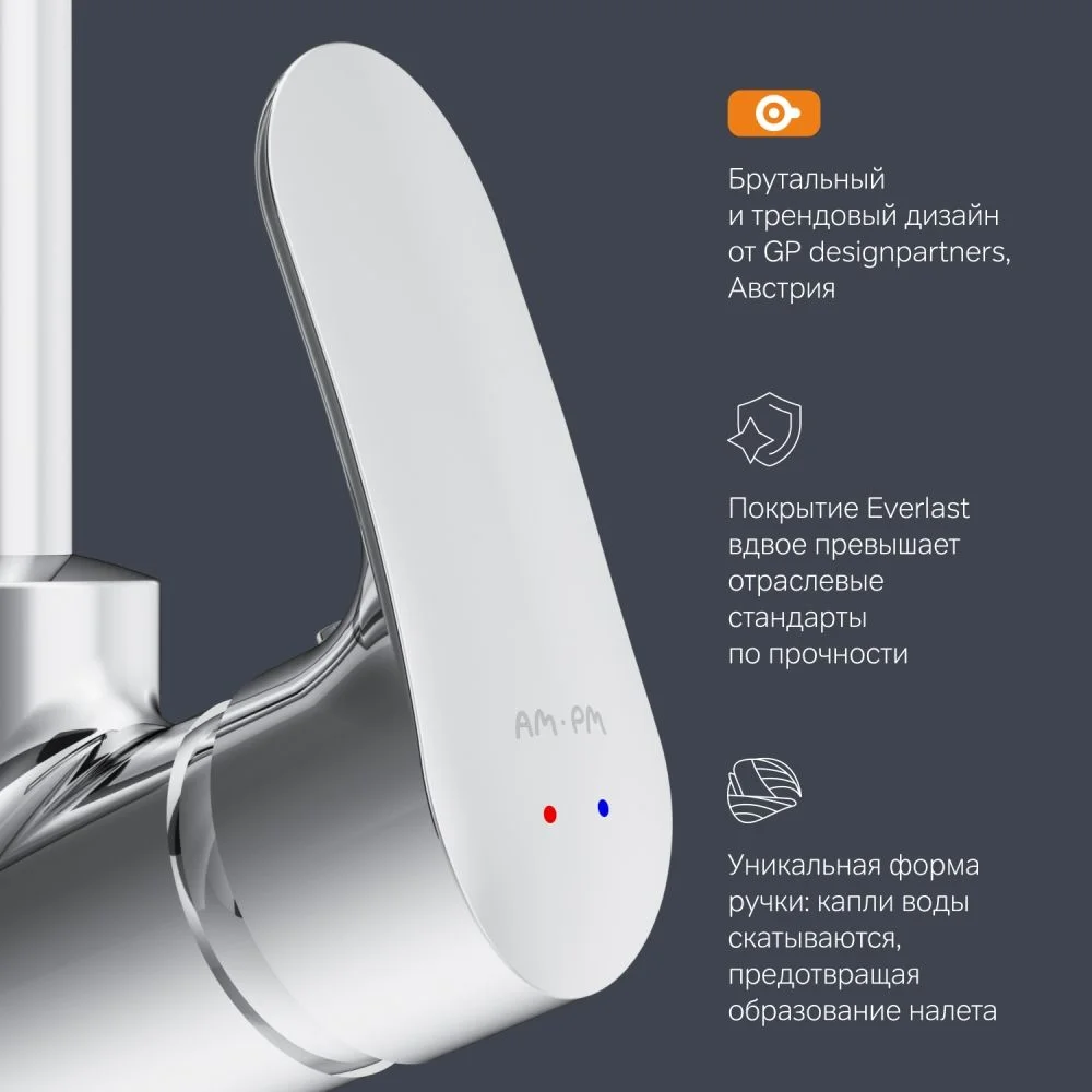 Эксклюзивная разработка: специально спроектированный для АМ.РМ керамический картридж SoftMotion 35 мм обеспечивает оптимальную регулировку температуры а также позволяет выдерживать любые перепады давления. Высокий излив придает смесителю утонченный