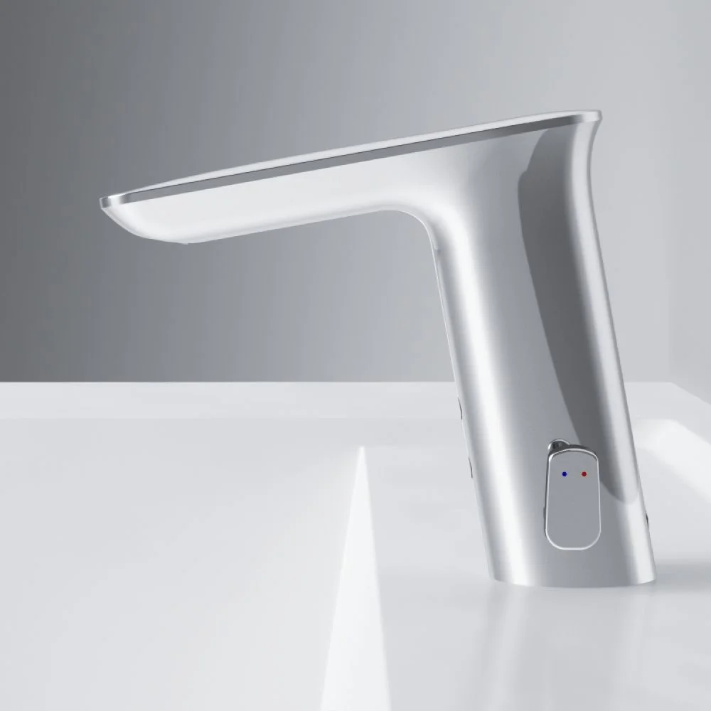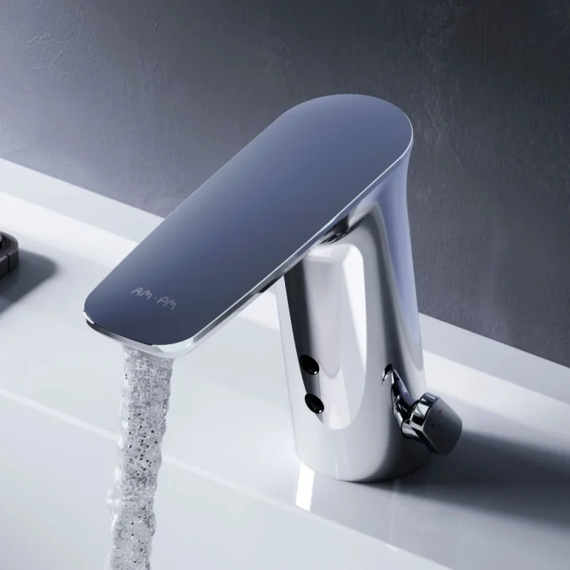 Абсолютная гигиеничность: настройте температуру воды и при необходимости дистанцию срабатывания сенсора чтобы потом пользоваться смесителем без лишних прикосновений.