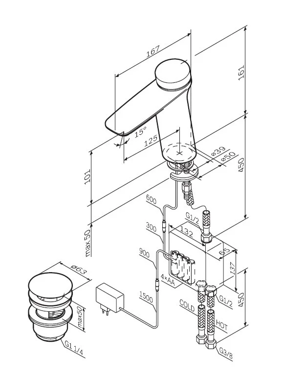 Быстрый старт с двумя настройками температуры и расхода воды. Каждый из параметров легко изменить и сохранить в памяти контроллера. ""