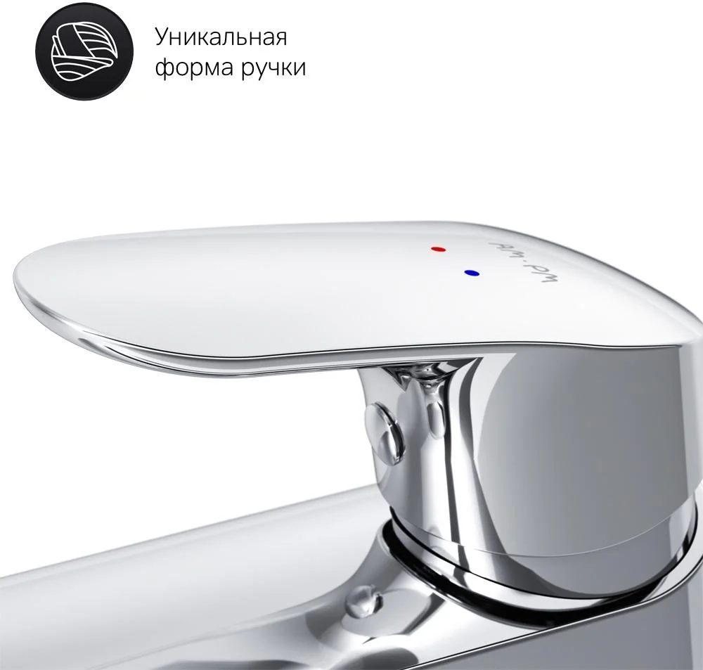 Впервые модный дизайнерский смеситель в доступном сегменте: ультрамодный стиль Dynamic Organic — природные формы в сочетании с четкими линиями, доведенными до совершенства человеком. Дизайн, в котором учтены все детали: благодаря уникальной форме ручки капли воды скатываются, предотвращая образование налета, а не высыхают на поверхности. Эксклюзивная разработка: специально спроектированный для АМ.РМ керамический картридж SoftMotion 35 мм обеспечивает оптимальную регулировку температуры, а также позволяет выдерживать любые перепады давления. Точная инженерия для Вашего комфорта: благодаря обширной зоне движения ручки управлять температурой воды еще проще.