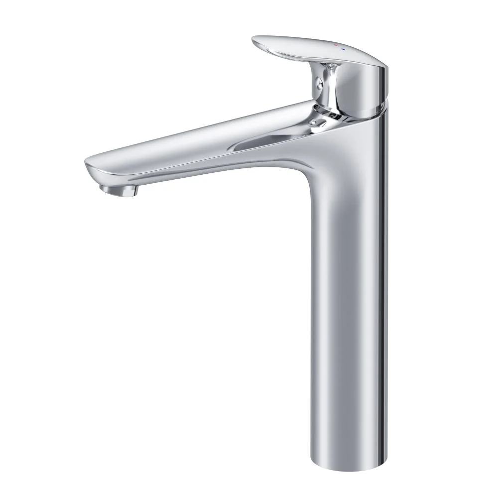 Высокий излив придает смесителю утонченный вид и идеально подойдет для раковины с глубокой чашей а благодаря обширной зоне движения ручки управлять температурой воды еще проще.