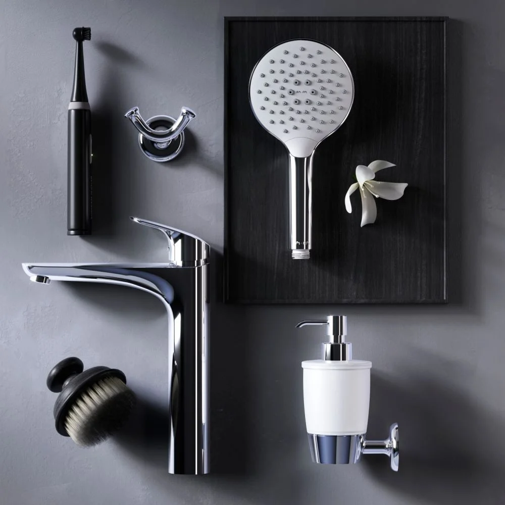 Дизайн в котором учтены все детали: благодаря уникальной форме ручки капли воды скатываются предотвращая образование налета а не высыхают на поверхности.