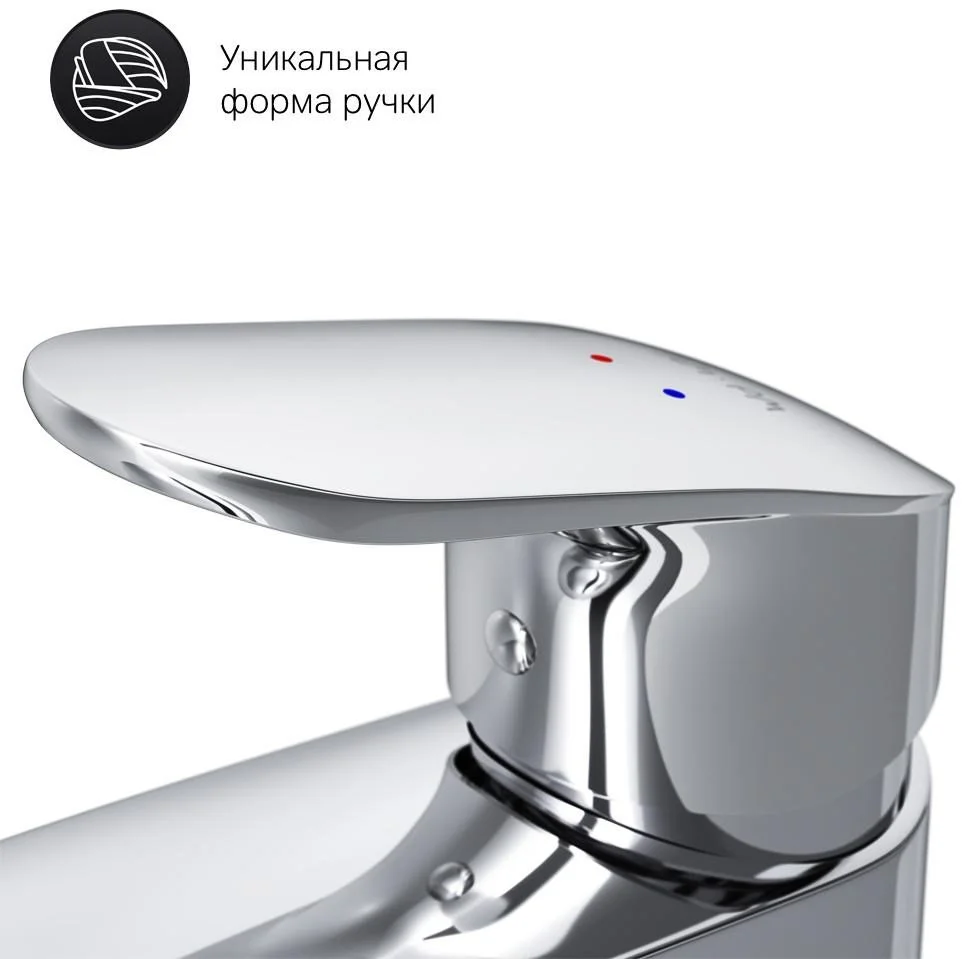 Дизайн в котором учтены все детали: благодаря уникальной форме ручки капли воды скатываются предотвращая образование налета а не высыхают на поверхности.