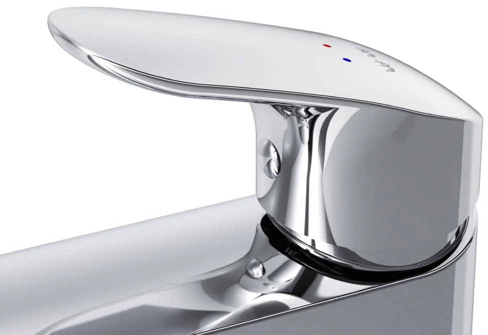 Дизайн в котором учтены все детали: благодаря уникальной форме ручки капли воды скатываются предотвращая образование налета а не высыхают на поверхности.