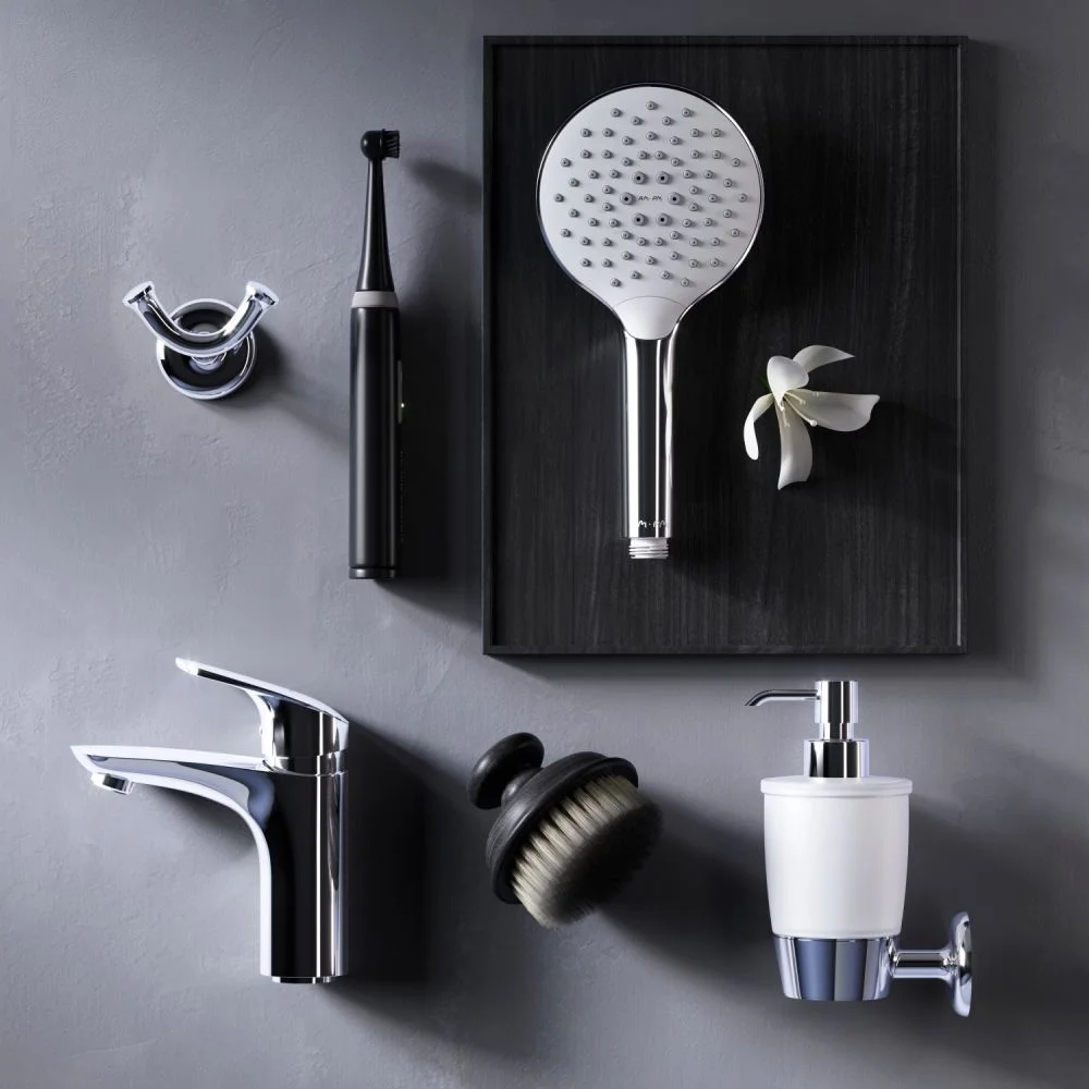 Дизайн в котором учтены все детали: благодаря уникальной форме ручки капли воды скатываются предотвращая образование налета а не высыхают на поверхности.