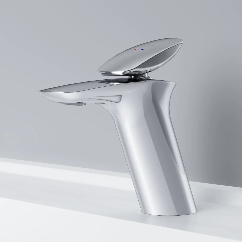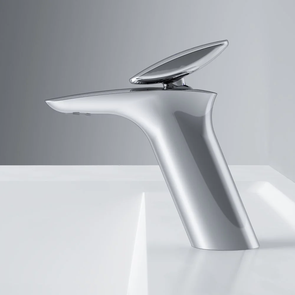 Наклон и плавный изгиб корпуса смесителя с одной стороны придают особую динамику дизайну с другой — обеспечивают удобство использования на высокой раковине.