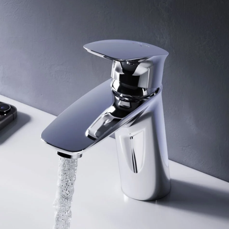Эргономичность: безупречно продуманная форма ручки идеально ложится в ладонь. Наклон и плавный изгиб корпуса смесителя обеспечивают удобство использования на высокой раковине.