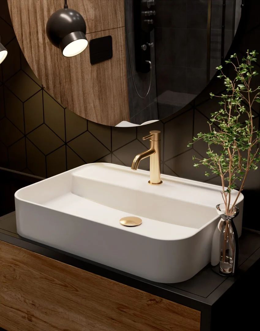 Смеситель для раковины AQUAme Siena AQM 6210GG 82мм, Glossy gold