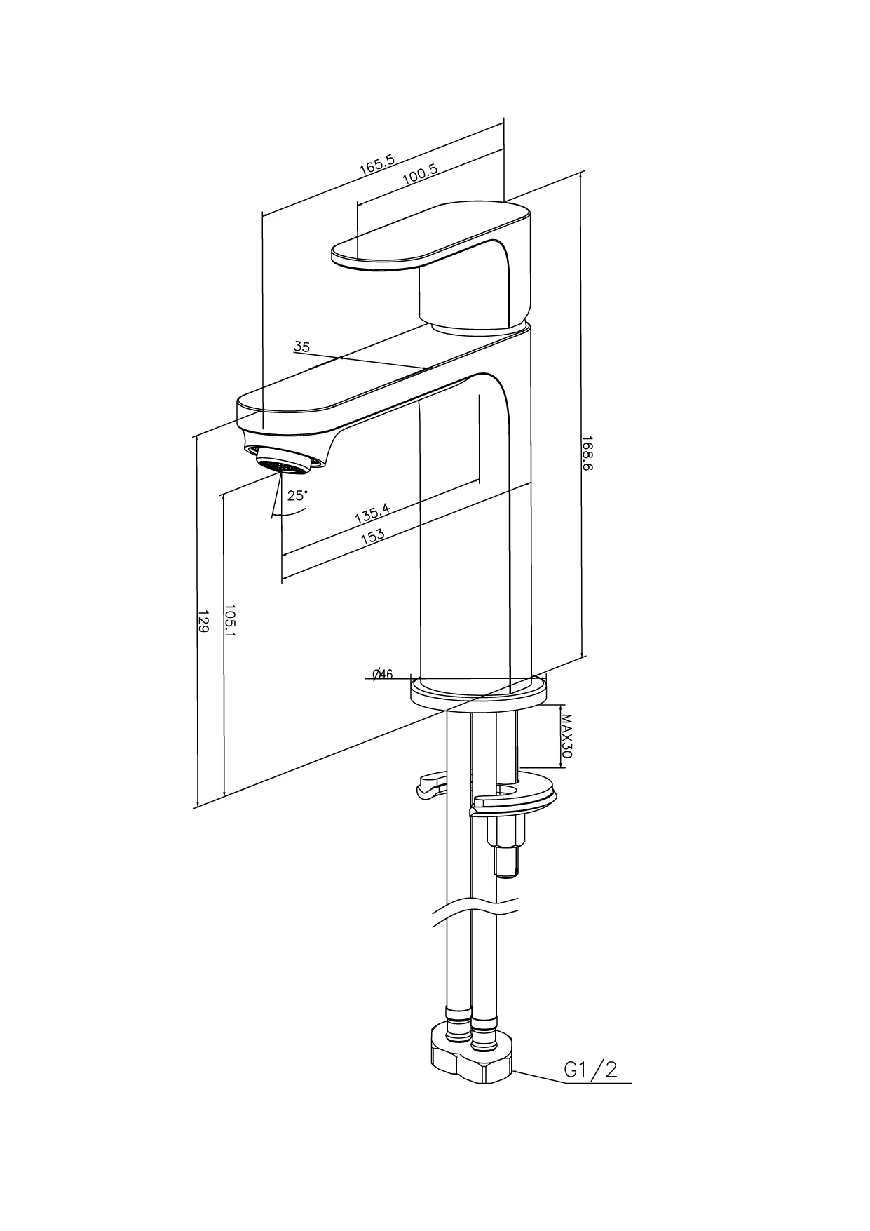 Высота излива, мм