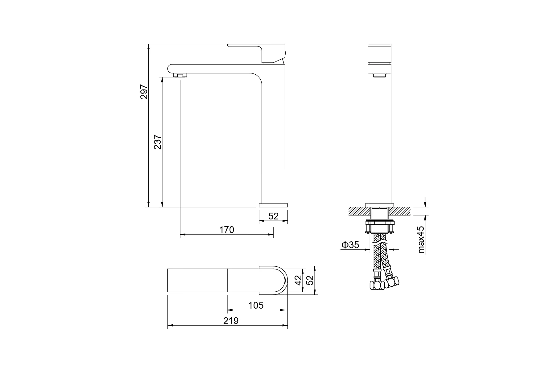 Высота излива, мм