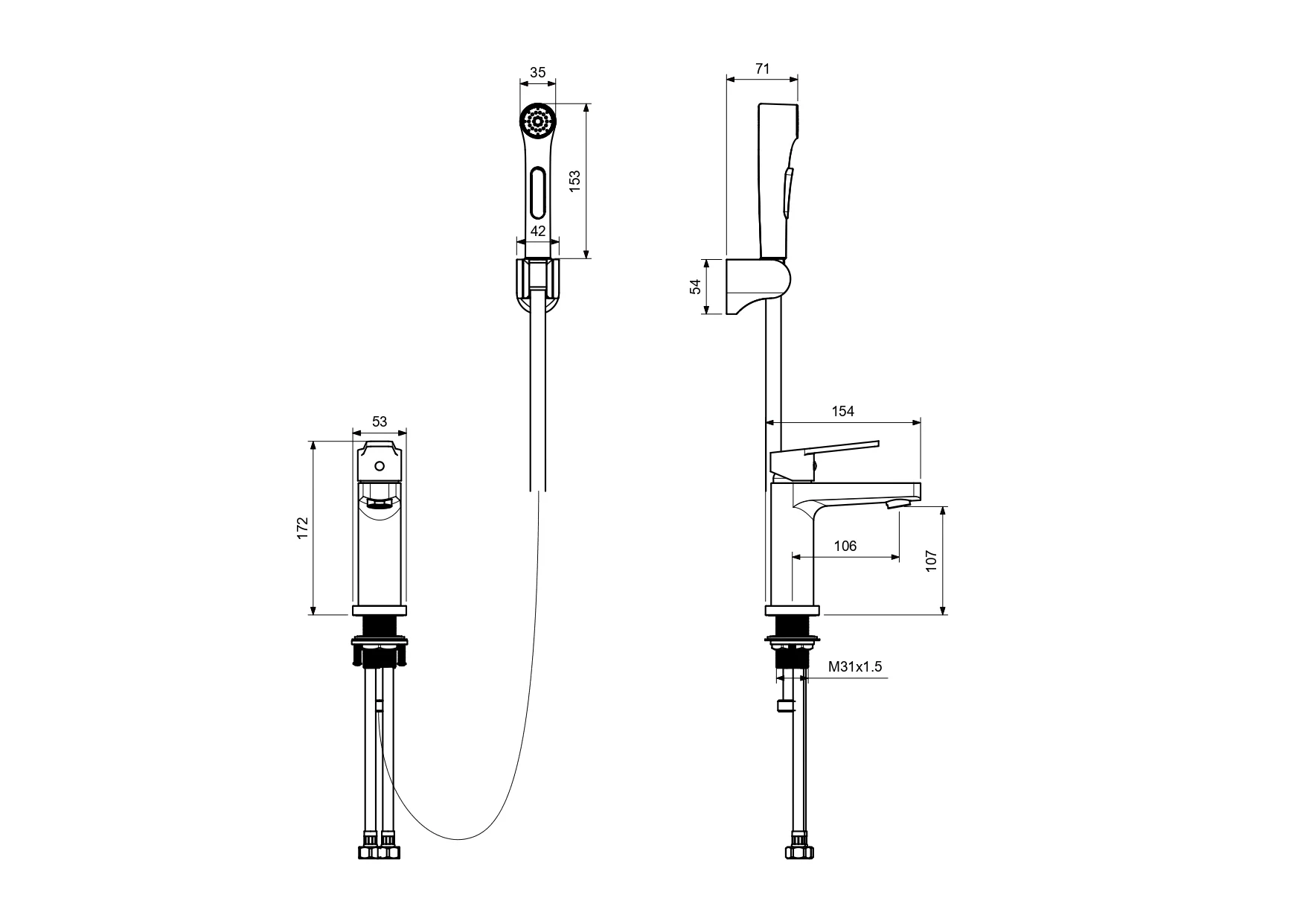 Смеситель для раковины Aquatek Лугано AQ1712BGM с гигиеническим ручным душем, оружейная сталь