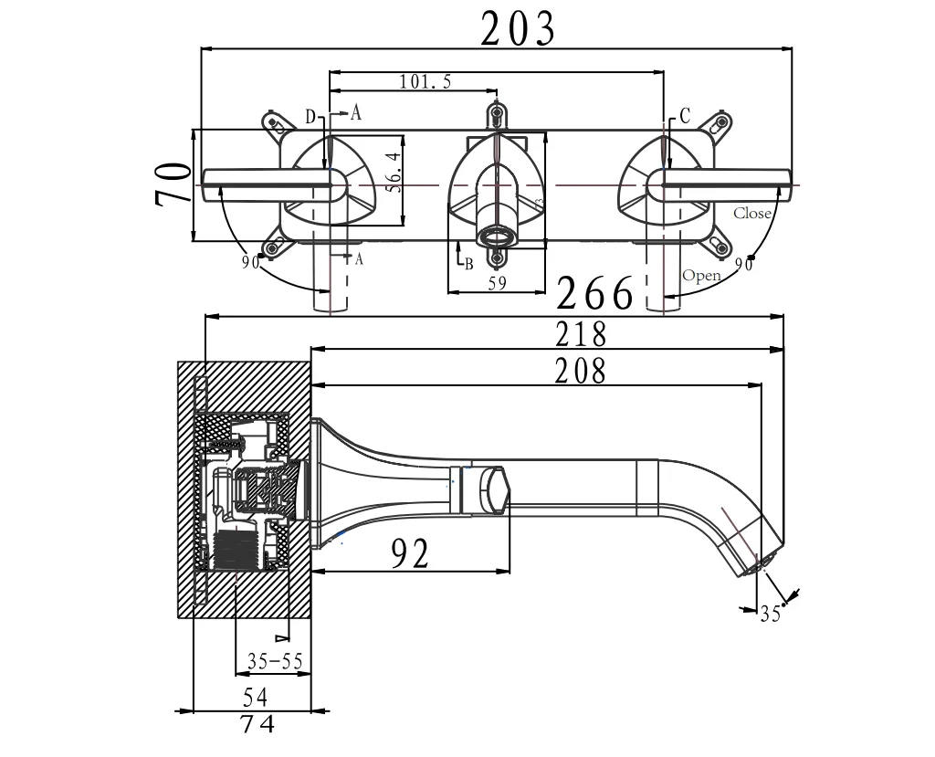 Длина излива, мм