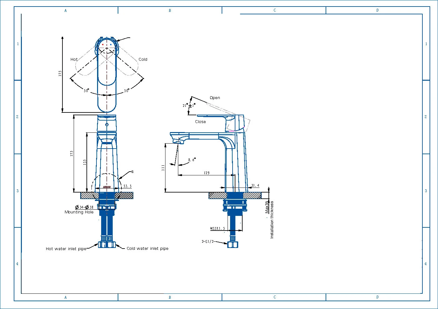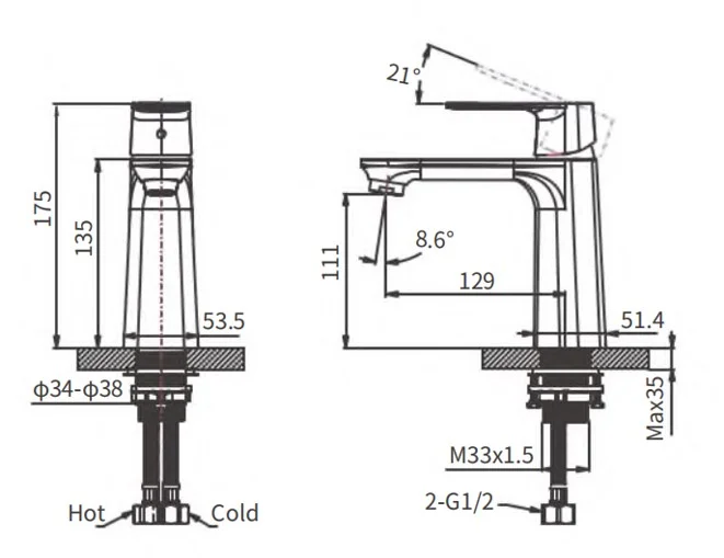 Высота излива, мм