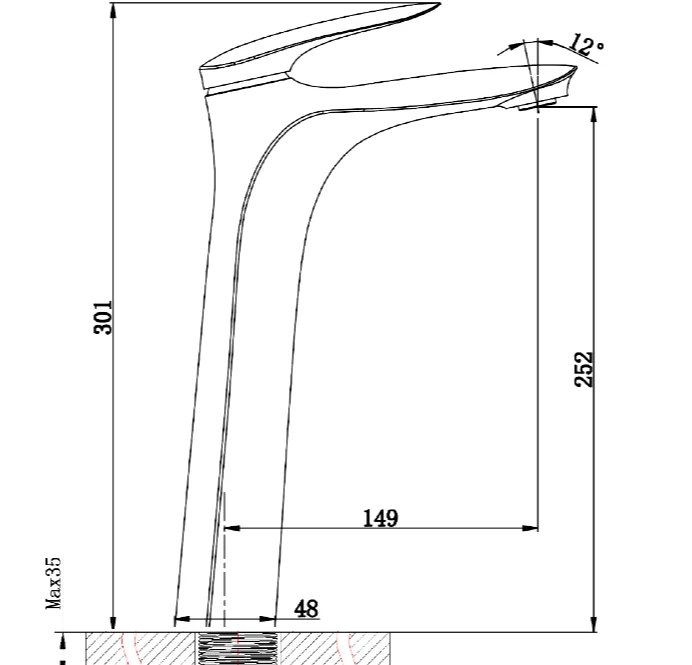 Высота излива, мм