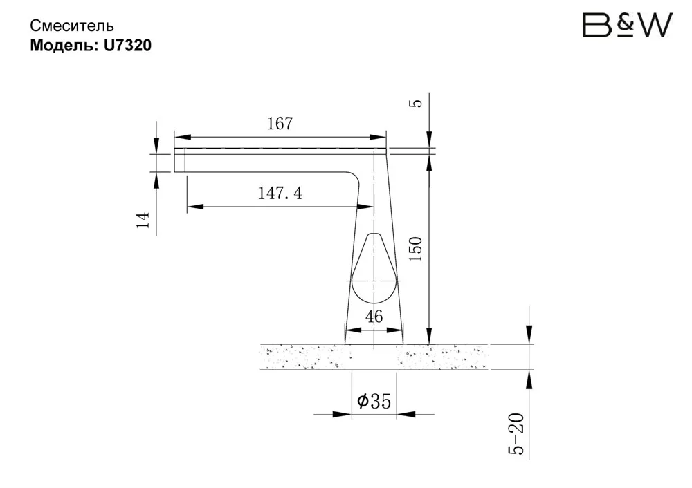 • Длина излива 147 мм