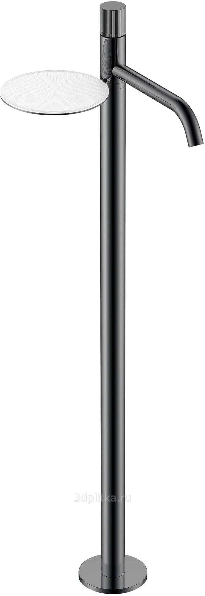 У смесителя есть удобная ручка для простой регулировки потока и температуры воды. Также в его конструкции предусмотрена полка, на которой можно разместить необходимые мелочи — например, мыло, косметику или телефон. Благодаря чему смеситель становится не только украшением ванной комнаты, но и удобным решением.