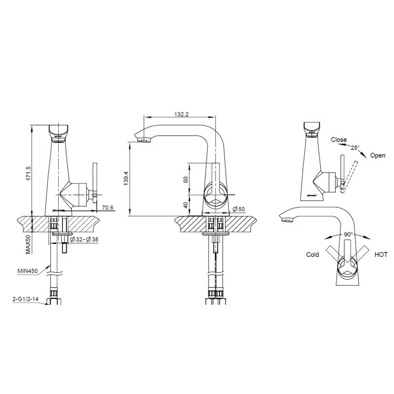 Смеситель для раковины Bravat Waterfall F173107C-1