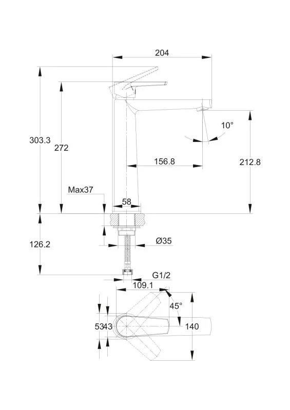 Высота излива, мм
