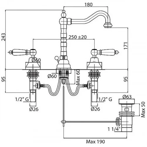 Смеситель для раковины Cezares Diamond (DIAMOND-BLS2-02-Sw) бронза