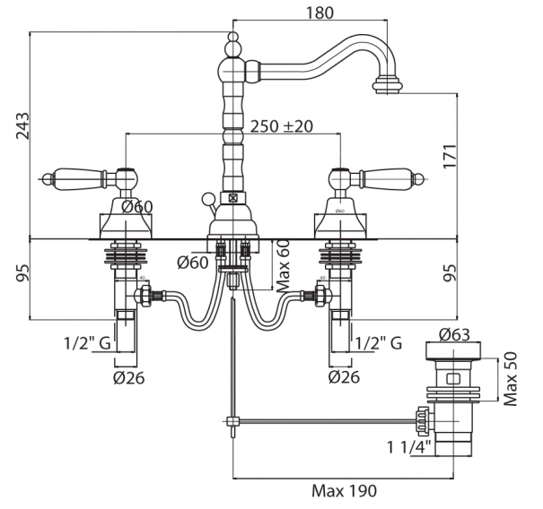 Смеситель для раковины Cezares Diamond (DIAMOND-BLS2-03/24-Sw) золото 24 карат
