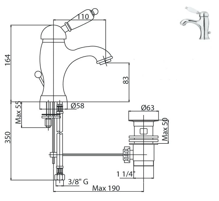 Смеситель для раковины Cezares Elite (LSM1-03/24-M) золото 24 карат ELITE-LSM1-03/24-M