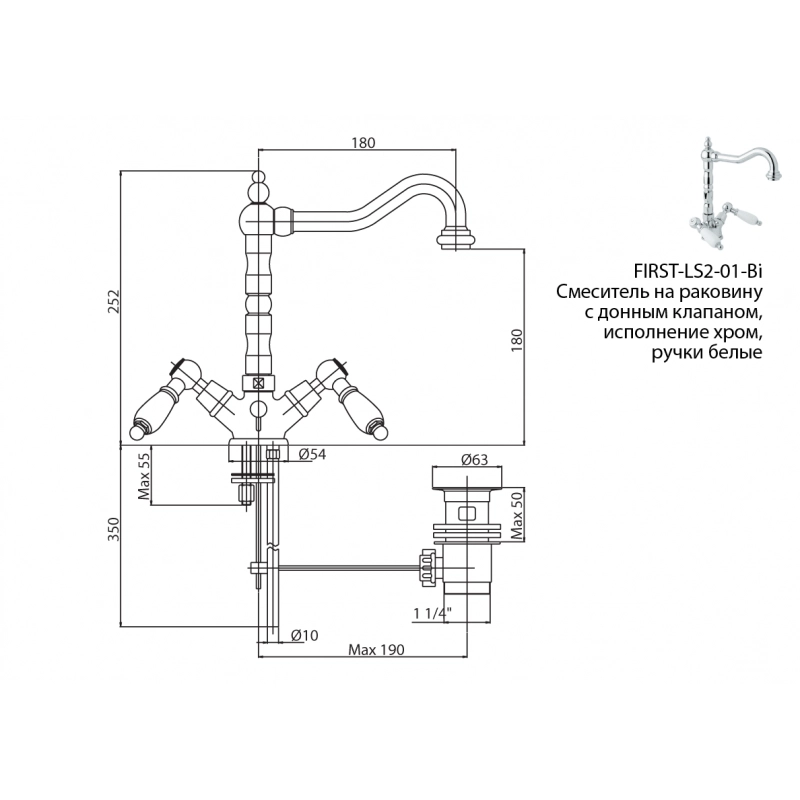 Смеситель на раковину с донным клапаном.
