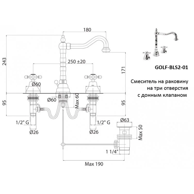 Смеситель для раковины CEZARES GOLF-BLS2-03/24