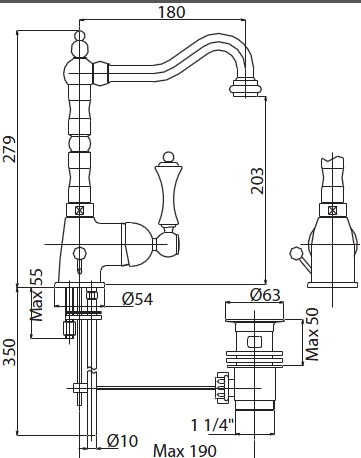 Смеситель для раковины Cezares Margot (LSM2-03/24-M) золото 24 карат MARGOT-LSM2-03/24-M