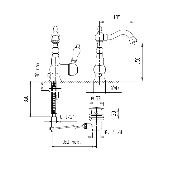 Смеситель для раковины Cezares Venezia (VENEZIA-LSM2-01-Bi) хром