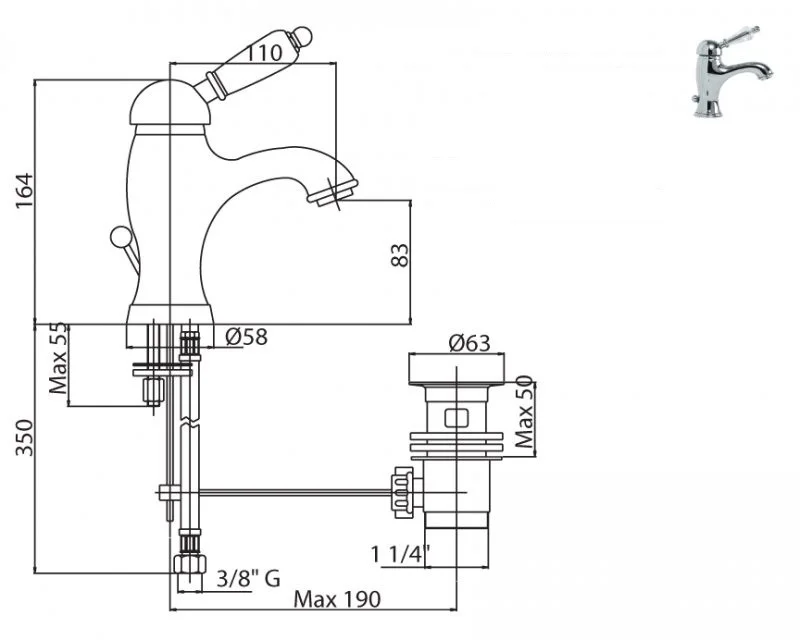 Смеситель для раковины Cezares Vintage (LSM1-01-SW-N) хром VINTAGE-LSM1-01-SW-N
