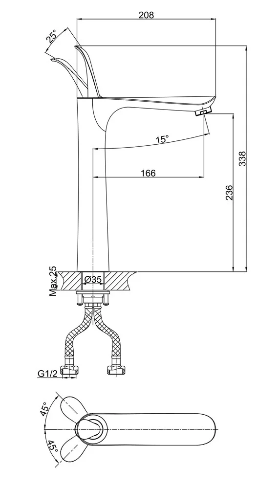 Высота излива, мм