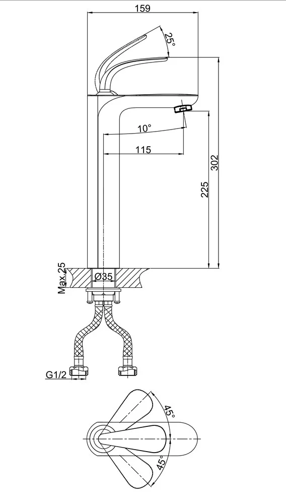 Высота излива, мм
