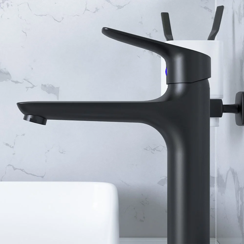 Новый формат: смеситель с высоким изливом идеально впишется в современный интерьер ванной комнаты с глубокой чашей а глубокий черный цвет смесителя придаст особый шарм вашей раковине. Идеальное управление: керамический картридж Light Flow обеспечивает плавное управление ручкой смесителя и оптимальную регулировку температуры и мощности потока.