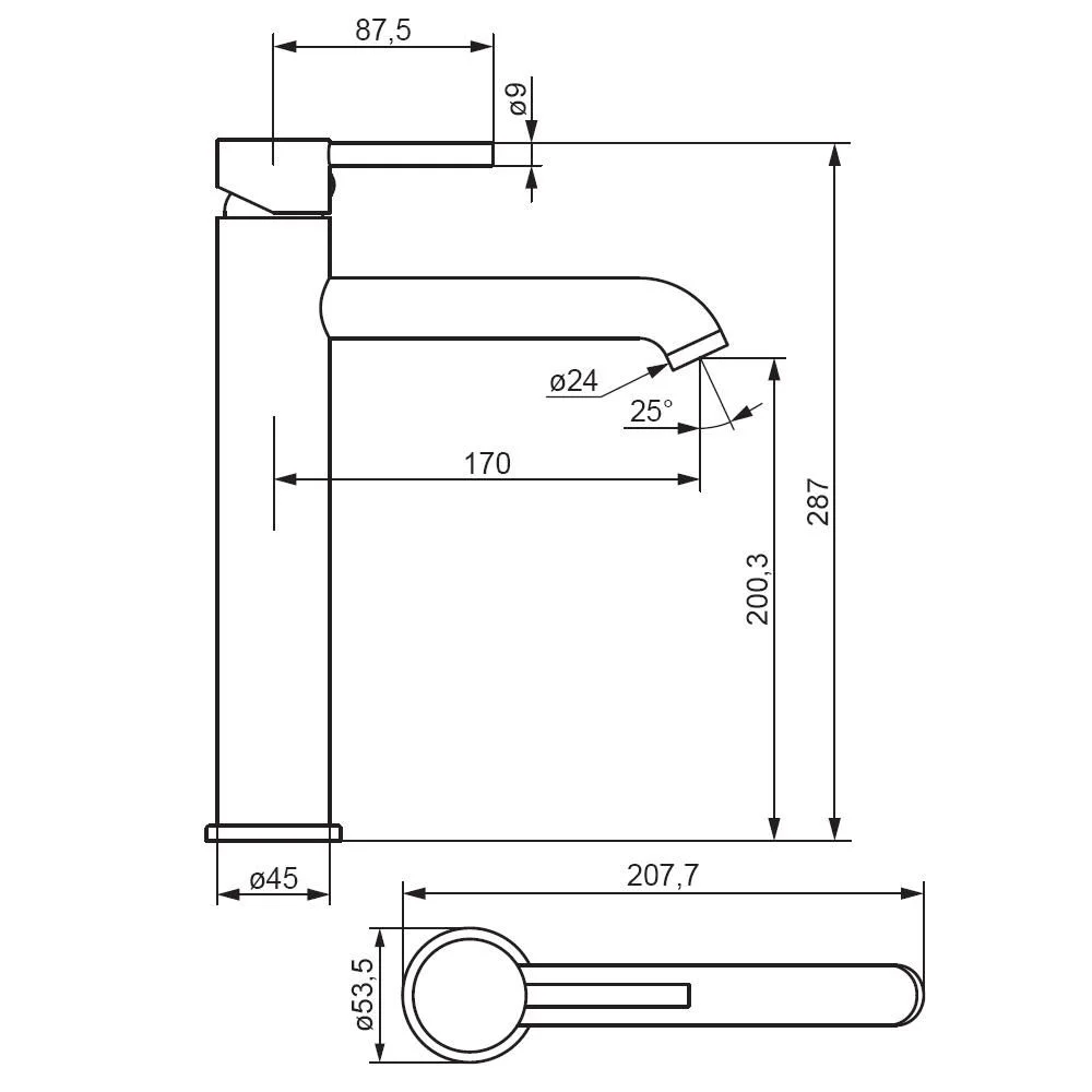 Высота излива, мм