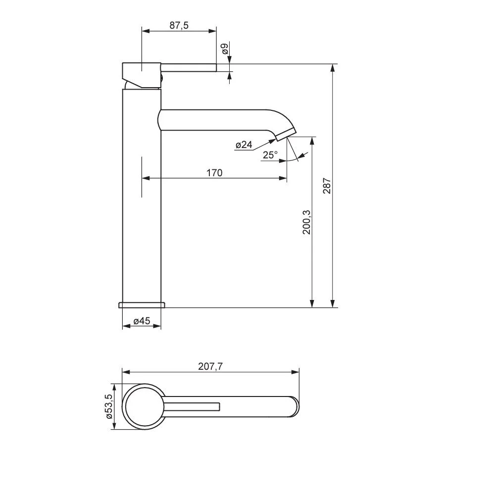 Высота излива, мм