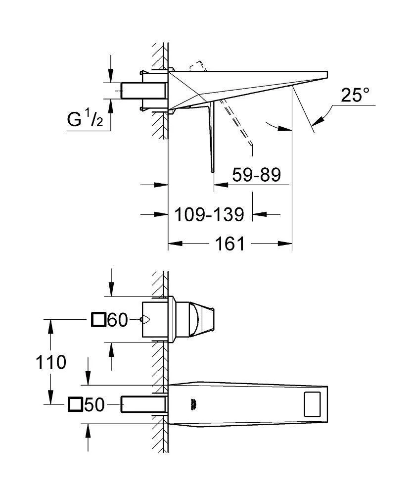 Смеситель для раковины GROHE Allure Brilliant на 2 отверстия (вынос 161 мм), хром (19781000) внешняя