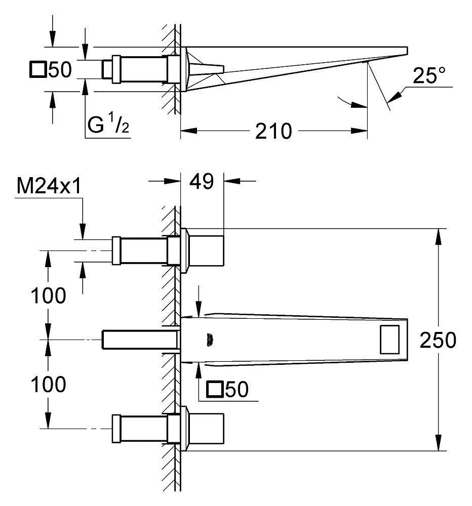 - Комплект верхней монтажной части для 29025000 (Встраиваемый смеситель GROHE Ondus для скрытого монтажа, двухвентильный)