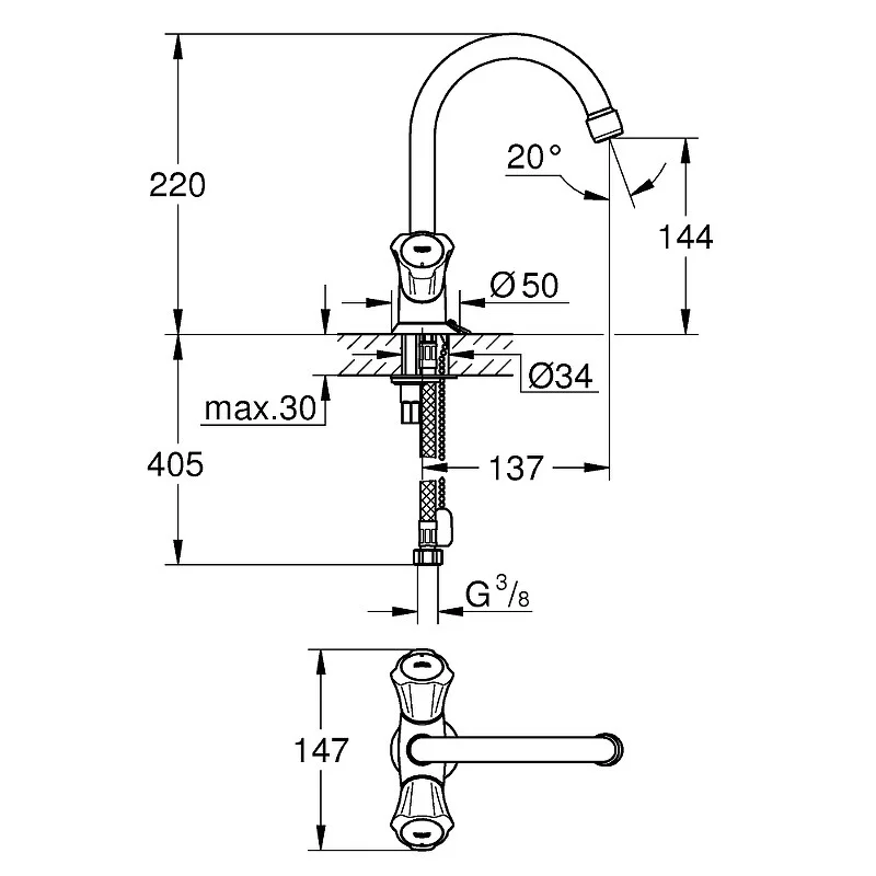 Смеситель для раковины GROHE Costa L с цепочкой и высоким С-изливом, хром (21374001)