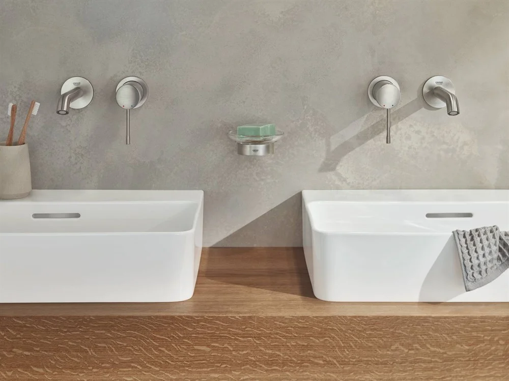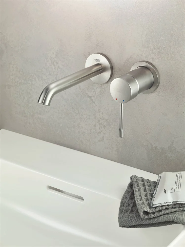 Смеситель для раковины GROHE Essence New, настенный монтаж, на два отверстия, суперсталь (19408DC1)