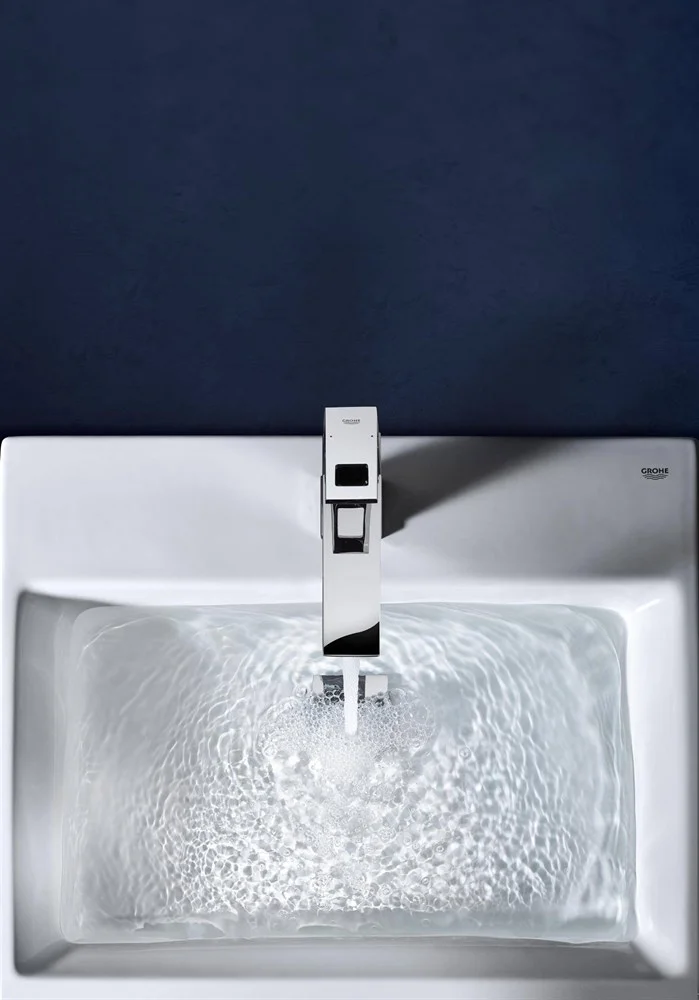 Этот однорычажный смеситель для раковины из коллекции Eurocube отличается стильным и элегантным обликом. В его конструкции применяется технология EcoJoy, которая помогает сберегать природные ресурсы, сокращая предельно возможный расход воды до 5,7 литра в минуту даже при максимальном напоре. Этот смеситель снабжен изливом средней высоты, идеально приспособленным для наполнения высоких емкостей. Встроенный в смеситель подъемный шток дает возможность легко открывать и закрывать сливной клапан. В конструкции керамического картриджа применяется технология GROHE SilkMove, которая обеспечивает рычагу плавный и свободный ход во всех направлениях, что позволяет с легкостью управлять температурой и напором струи воды. Система монтажа GROHE QuickFix Plus вдвое сокращает затраты времени на монтаж по сравнению с использованием обычных систем крепления. Благодаря сияющему хромированному покрытию GROHE StarLight этот смеситель станет долговечным украшением интерьера Вашей ванной комнаты и будет радовать Вас во всех отно
