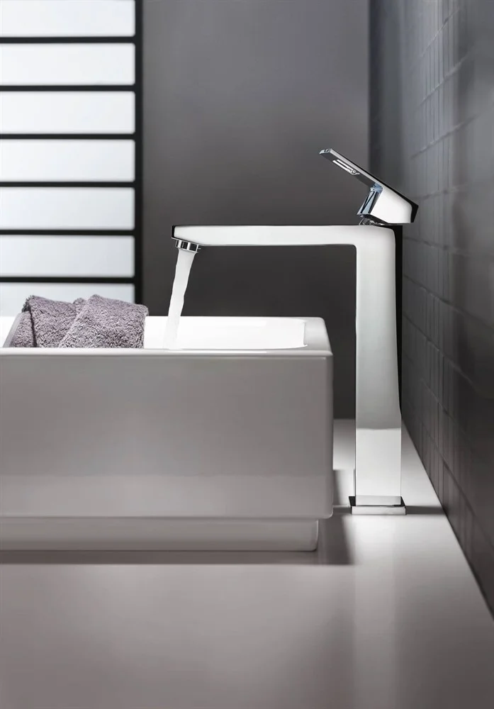 Отдельно стоящая раковина всегда служит эффектным акцентом в интерьере ванной комнаты и придает ему неповторимость, из какого бы материала она ни была изготовлена. Этот смеситель из коллекции GROHE Eurocube с его запоминающейся элегантностью безупречно сочетается с раковинами упомянутого типа. Он отличается цельным корпусом без вставок и лаконичным дизайном. Благодаря сияющему хромированному покрытию GROHE StarLight он придаст зоне раковины скромное и стильное очарование. Максимально высокий излив позволит Вам без затруднений мыть голову в раковине. Встроенный картридж с технологией GROHE SilkMove обеспечит приятную легкость в управлении температурой и напором струи воды. Технология EcoJoy поможет сберегать природные ресурсы и Ваши средства, сокращая максимально возможный расход воды до 5,7 литра в минуту.