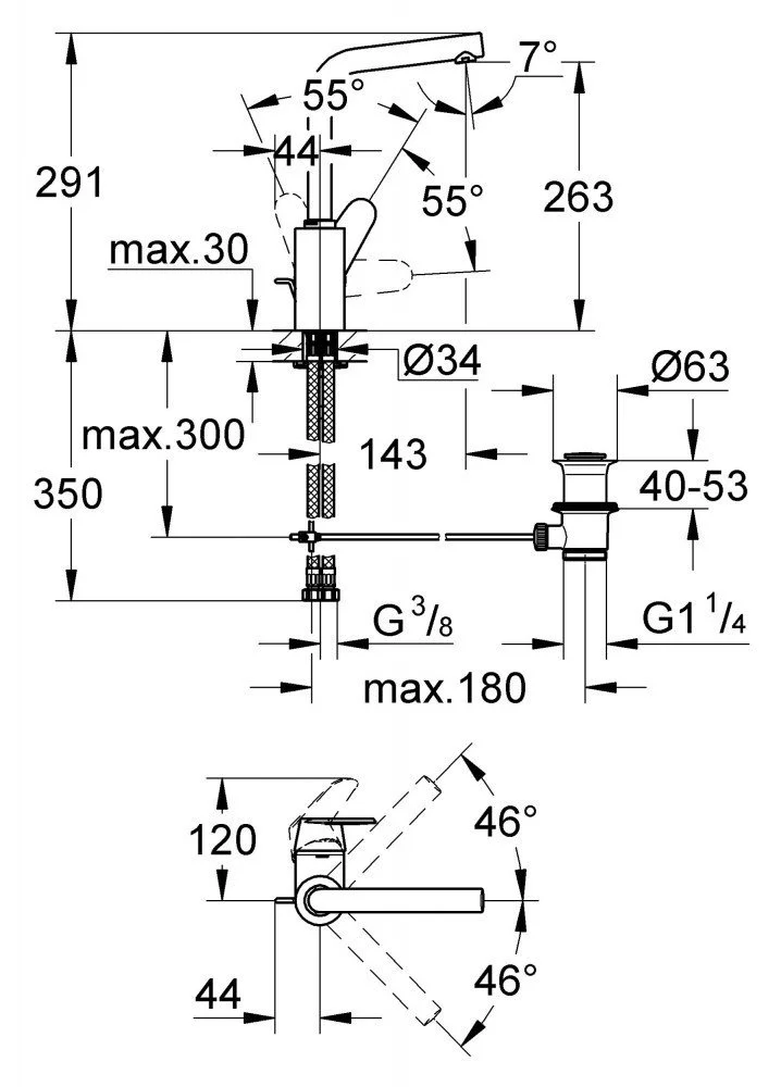 - Поворотный, трубкообразный излив с ограничителем поворота