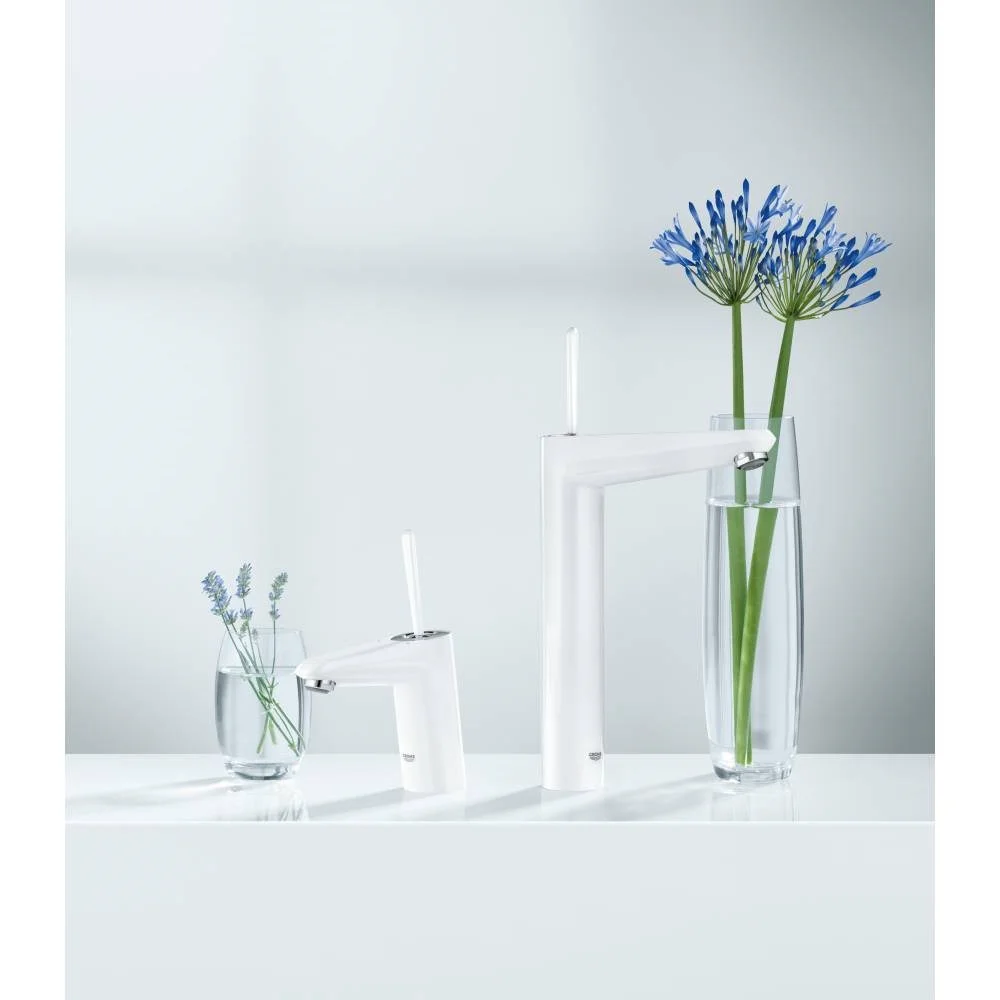 Благодаря своему изящному силуэту и износостойкому покрытию Moon White, этот смеситель для ванной комнаты из коллекции Eurodisc Joystick неизбежно станет центром внимания. Удачным дополнением к его исключительному дизайну служит полезный набор функциональных преимуществ. Картридж с технологией GROHE SilkMove обеспечивает плавность регулировки напора воды при минимуме усилий. Технология GROHE EcoJoy ограничивает расход воды смесителем до 5,7 литра в минуту, способствуя сбережению природных ресурсов, а также снижению Ваших затрат на коммунальные услуги. Благодаря системе предотвращения известкования SpeedClean, аэратор очищается от известковых отложений легким протиранием. Система монтажа GROHE QuickFix позволяет осуществить установку смесителя быстро и без затруднений.